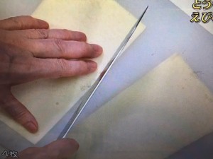 包丁で5~6mm幅につぶしながら引きちぎる。