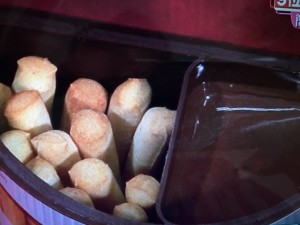 スティックパンとチョコレートクリームがセットになったお菓子。