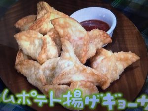 メニューは、ゆで卵と豚ひき肉のマヨギョーザ、もやし&とうもろこしの棒ギョーザ、はんぺんと鶏のふわふわギョーザ、トマトとツナのカレーギョーザ、ハムポテト揚げギョウザ。