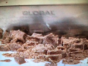 5、(3)に水400cc、顆粒コンソメ、包丁で刻んだビーフシチューのルーを加えて煮込む。