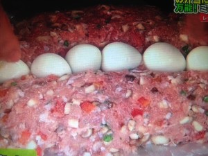 そこにうずらの卵を埋め込み、ひき肉でフタをして、