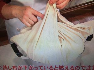蒸し布は使う前に水洗いして水気をよく絞ってから敷きます。