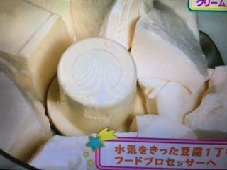 100円の普通の豆腐をフードプロセッサーにかけるだけでうま味やコクがアップする「クリーム豆腐」の作り方が紹介されていました。