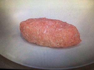 手に水をつけて、中央にチーズを入れて細長い小判形に丸める。